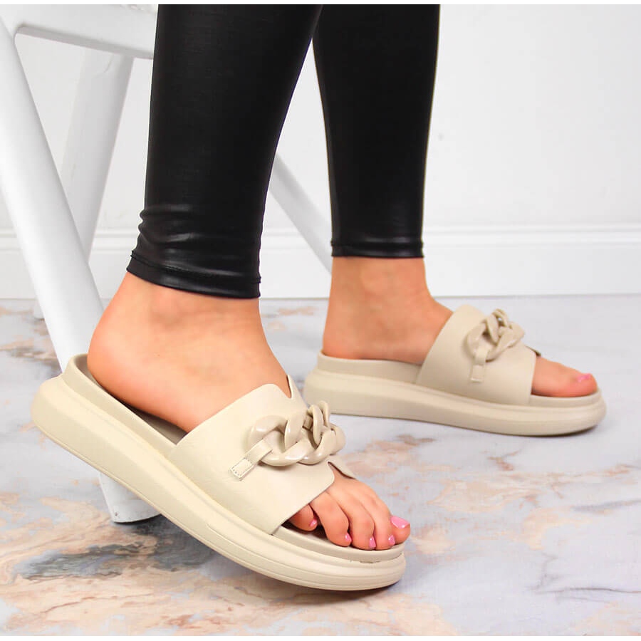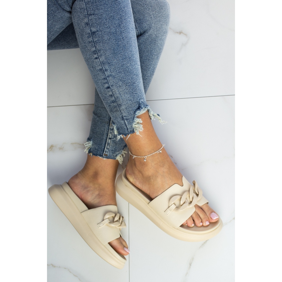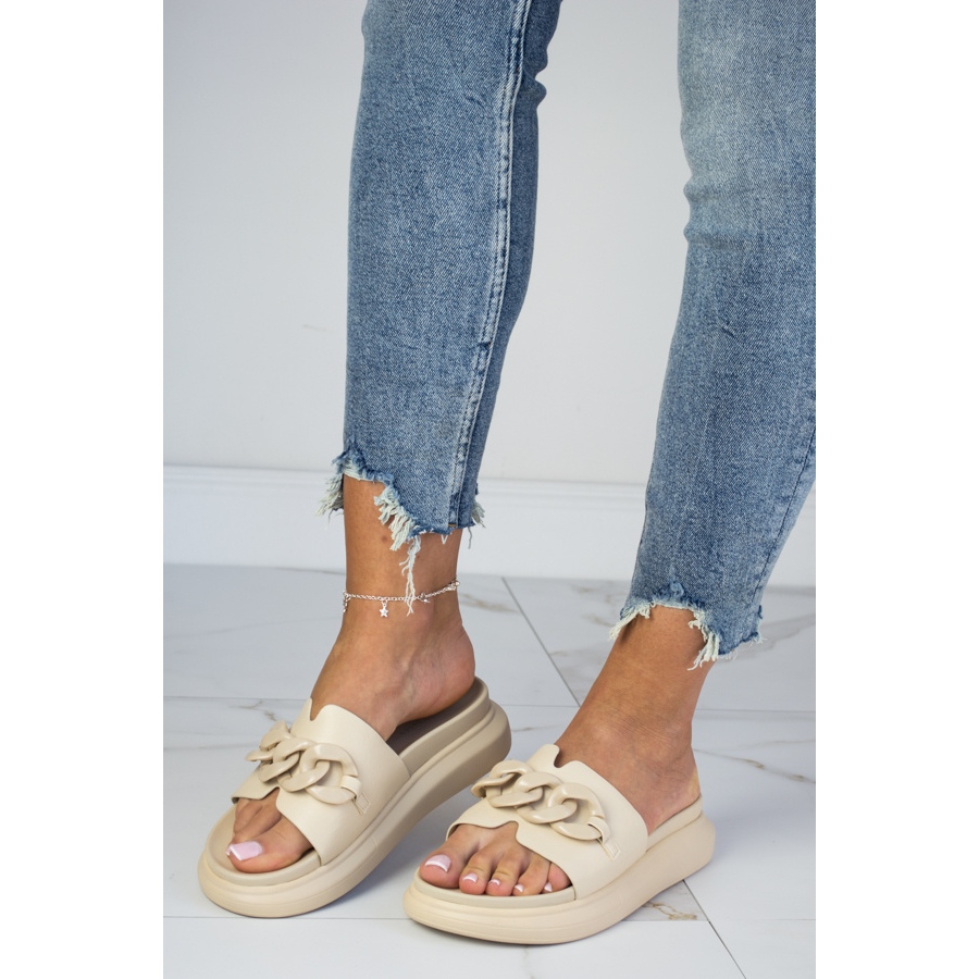 Detalii: Papuci bej Laura La.Fi platforma cu lant