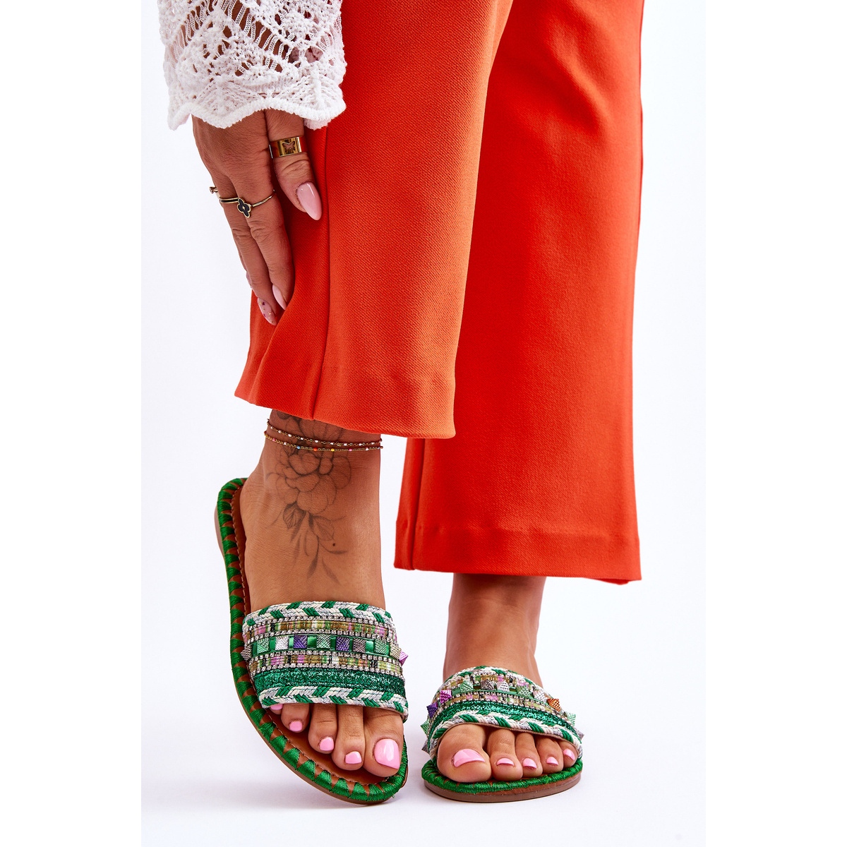 Detalii: Papuci Bellisa verzi împodobiți de damă verde