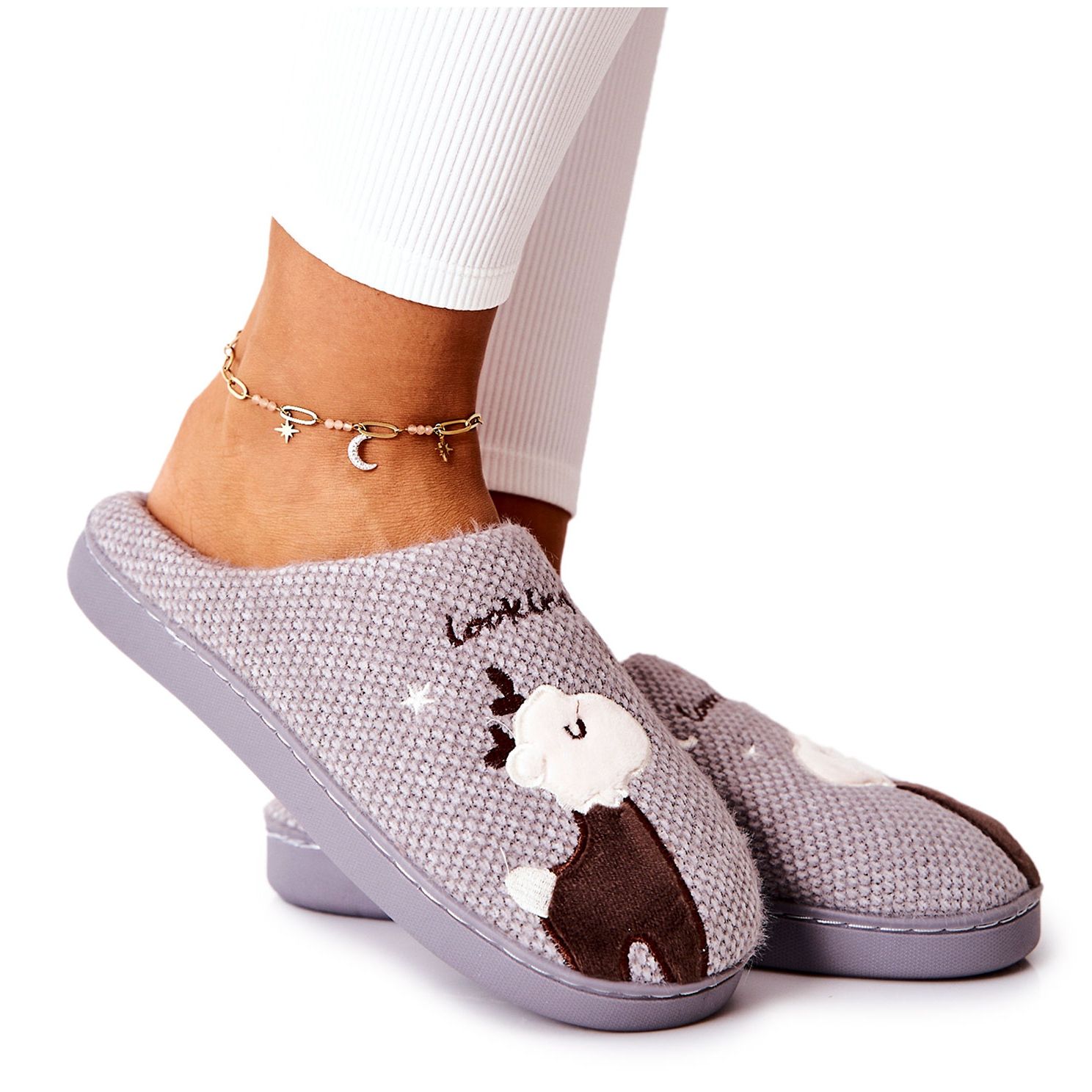 Descoperiți confortul și stilul cu papucii izolați Reindeer Grey Jilly de la WJ1! Acești papuci maro fermecați sunt perfecti pentru zilele reci, garantând căldură și confort de neegalat. Realizate din material placut la atingere, ofera moliciunea de care ai nevoie pentru a te simti confortabil in confortul casei tale.
