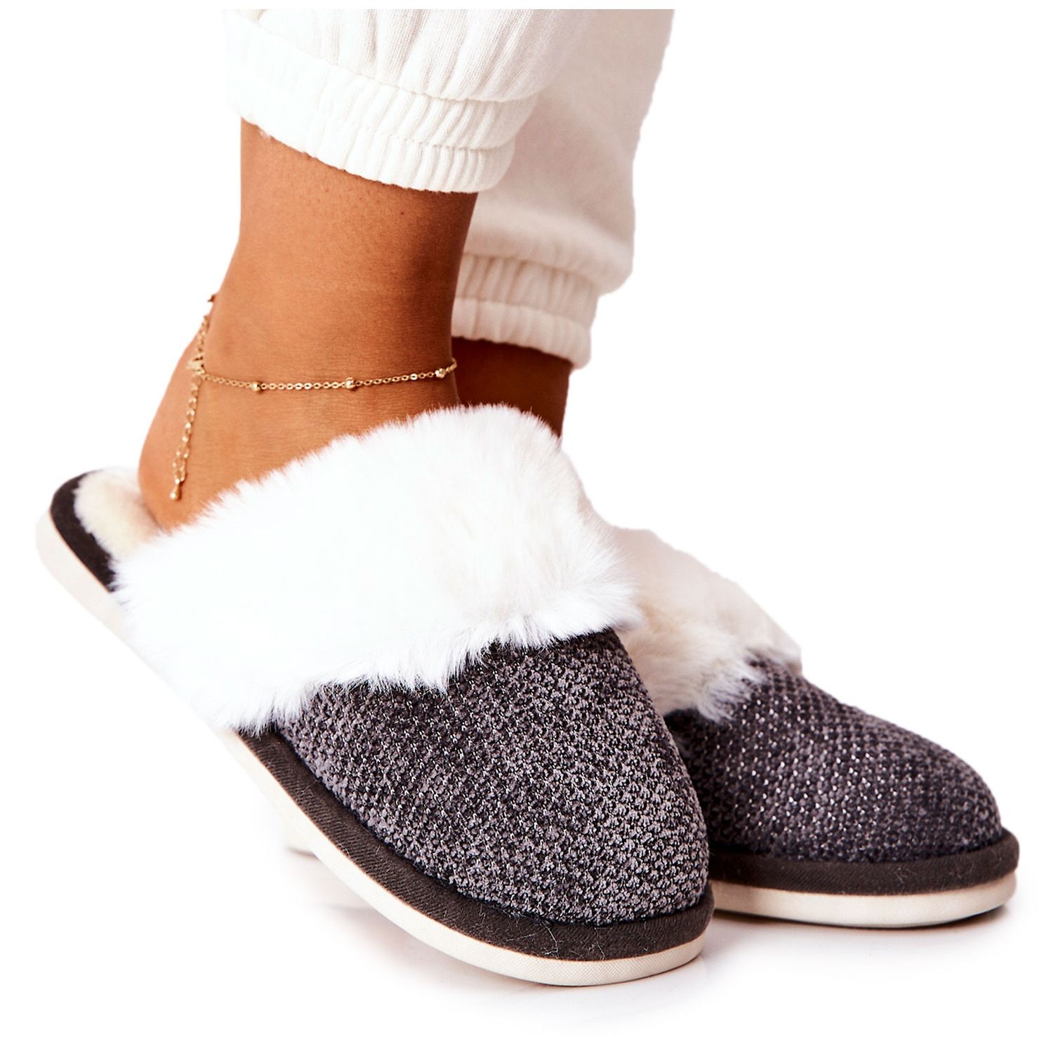 Detalii: Papuci Calzi Cu Blana Gri Flamarin bej