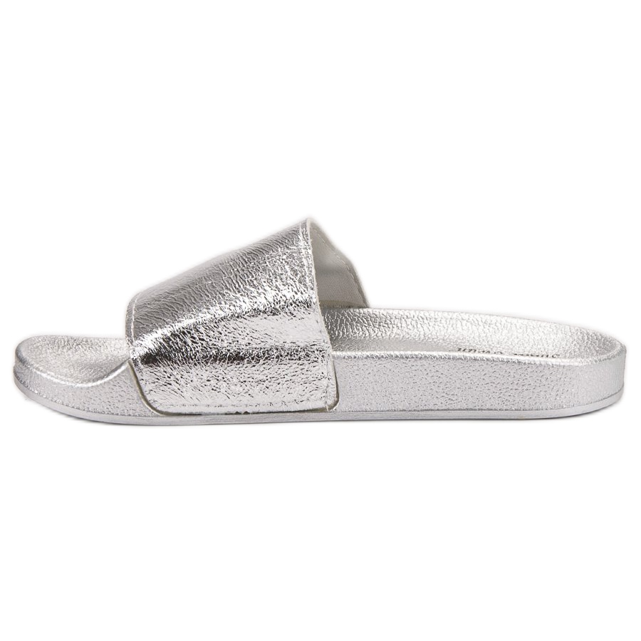 Descoperiți confortul și stilul cu șlapii casual damă Small Swan într-o nuanță elegantă de gri. Aceste șlapi neobișnuite se caracterizează printr-o strălucire unică, metalică, care cu siguranță va atrage atenția și va adăuga șic oricărui stil. Perfecte pentru utilizarea de zi cu zi, sunt completarea perfectă a ținutelor casual de vară și a evadărilor de vacanță, de exemplu pe plajă.