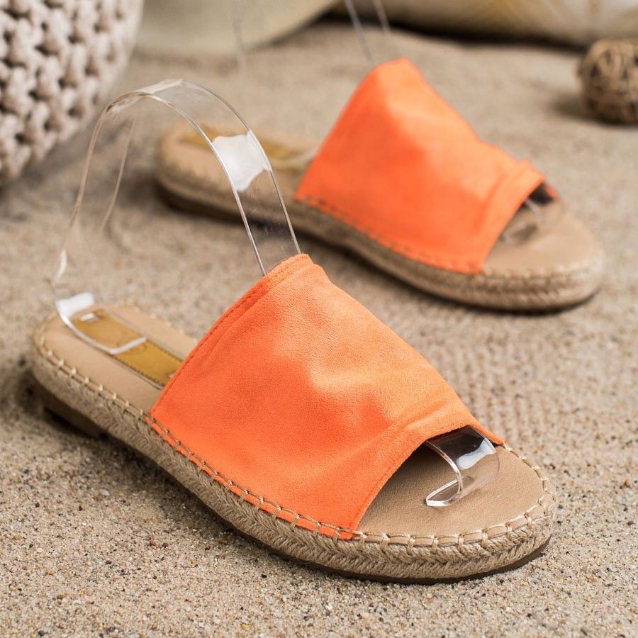 Flip-flops sunt confectionati din imitatie de piele intoarsa de inalta calitate, ceea ce asigura un aspect elegant si modern. Nuanța cremoasă de portocaliu va însufleți orice stil, adăugând un accent colorat. Formați într-un stil clasic, slip-on, cu toc deschis, sunt extrem de ușor de cumpărat și purtat - pur și simplu slip-o și bucurați-vă de confort.