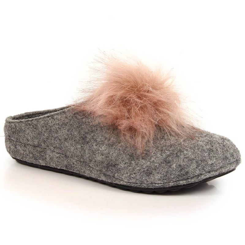Detalii: Papuci confortabili din fetru cu pompon Panto Fino INT1767B gri