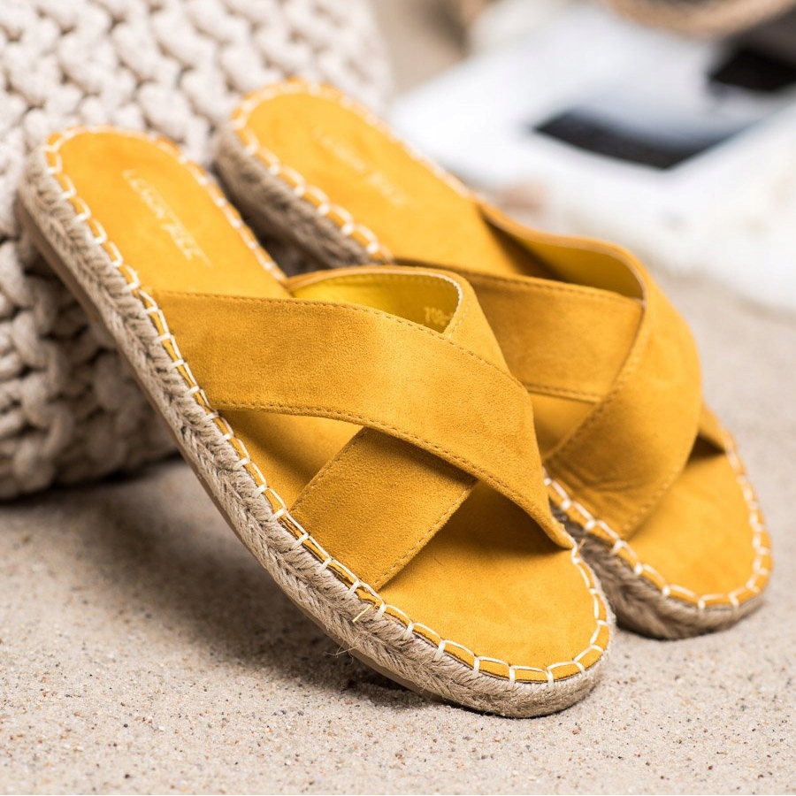 SHELOVET SHELOVET Papuci confortabili din piele intoarsa galben