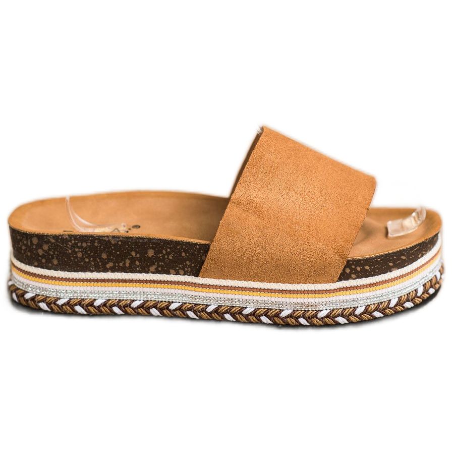 SHELOVET SHELOVET Papuci confortabili din piele intoarsa maro