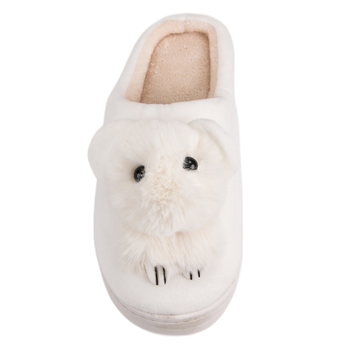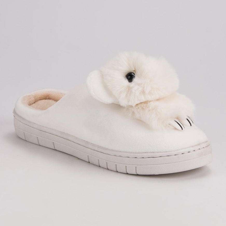 Papucii albi confortabili sunt alegerea perfectă pentru fiecare femeie care apreciază confortul și designul fermecător. Acești papuci unici, care seamănă cu un mic iepuraș, se potrivesc perfect în atmosfera de acasă. Fabricate din material textil de înaltă calitate, acestea se caracterizează prin blană moale, care mărește semnificativ confortul odihnei.