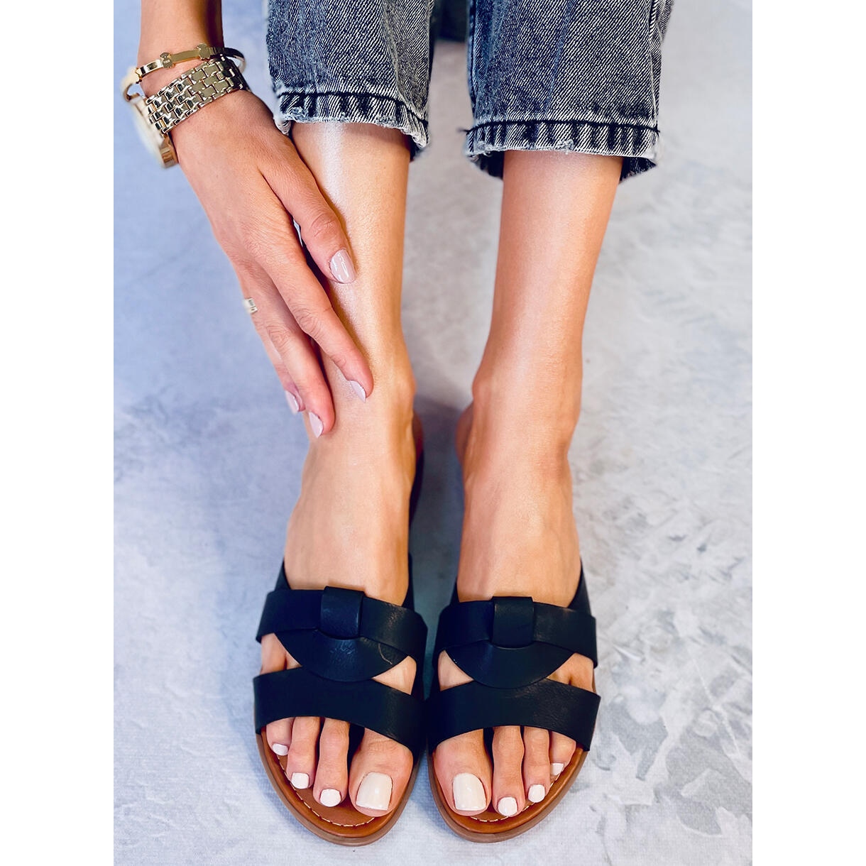 Curelele încrucișate nu numai că le oferă un aspect atractiv, dar și țin eficient piciorul în loc, făcându-le o alegere ideală pentru utilizarea de zi cu zi. Datorită tocului plat și branțului moale, acești șlapi sunt perfecti pentru a fi purtati multe ore, atât în agitația orașului, cât și în timpul plimbărilor relaxante.