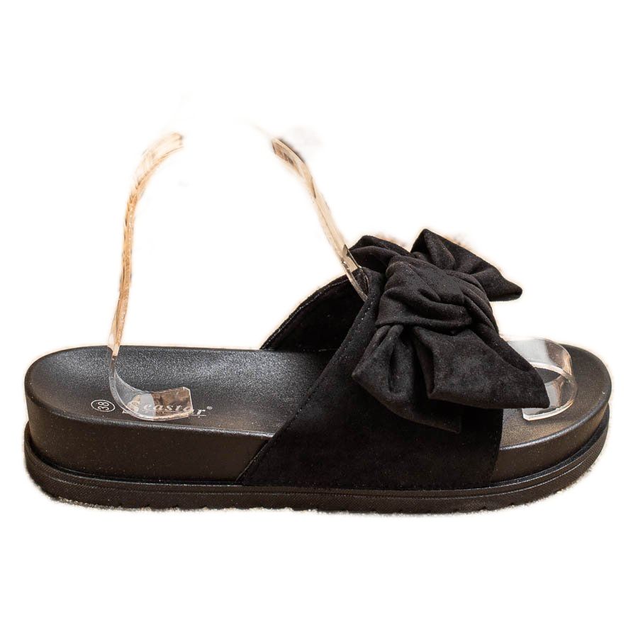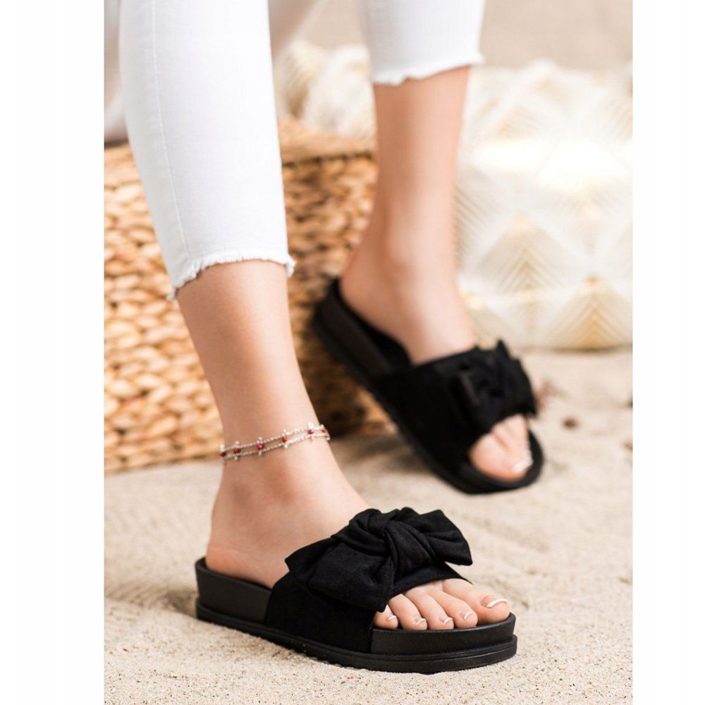 Șlapii au toc deschis și închidere slip-on, ceea ce asigură confort și ușurință de îmbrăcat. Confectionate din imitatie de piele intoarsa de inalta calitate, acestea incanta cu stralucirea subtila si finisajul elegant. În plus, o fundă fermecătoare le oferă o notă de fetiță, potrivindu-se perfect cu stilul casual.