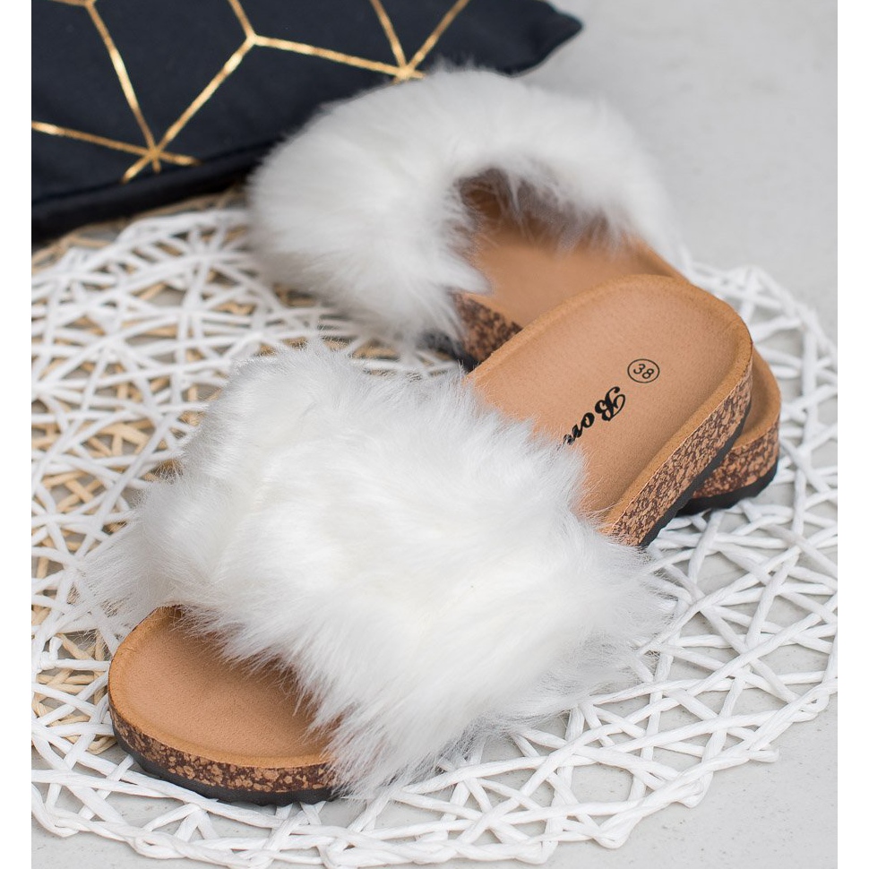 Bona Bona Papuci Cu Blana alb