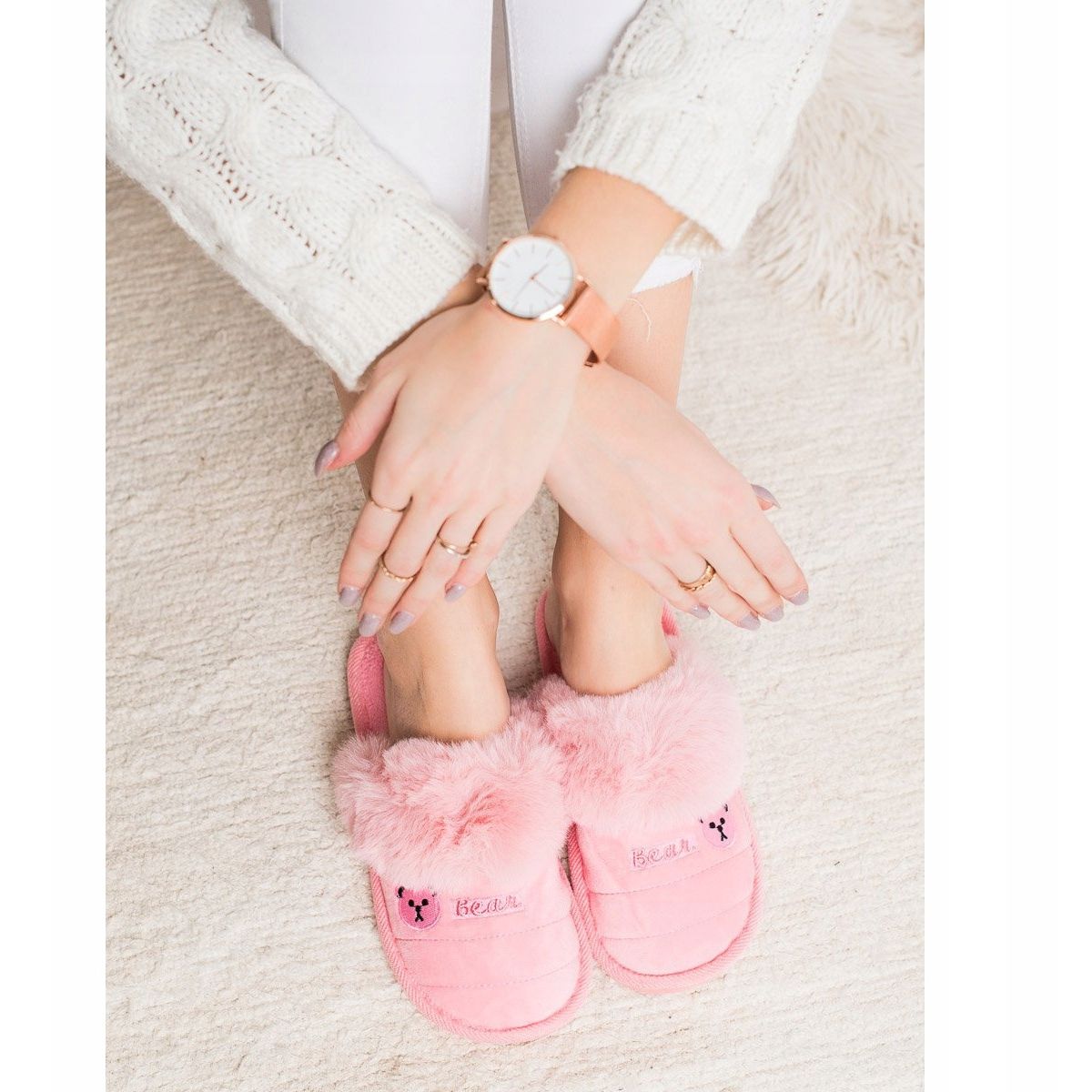 Detalii: Bona Papuci Cu Blana De Urs roz