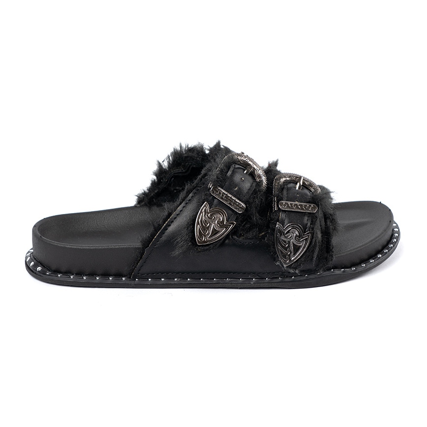 Shelvt Shelvt Papuci cu blană și catarame negru