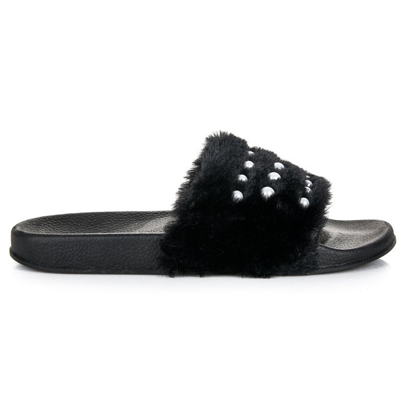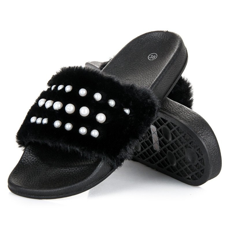 Detalii: Papuci Cu Blana Si Perle negru