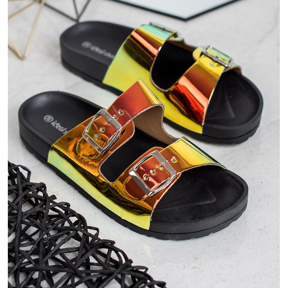 Detalii: Ideal Shoes Papuci cu cataramă Holo galben