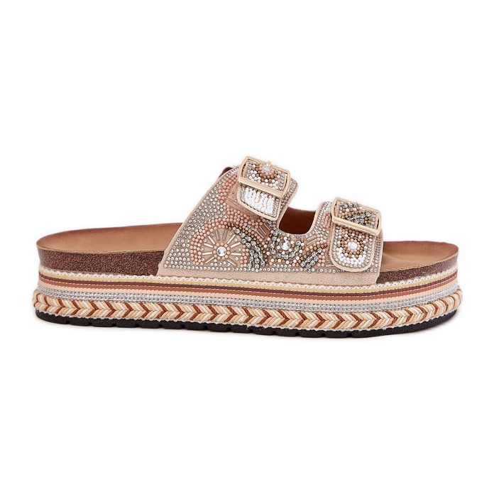 Detalii: Papuci cu decorare și catarame pe platforma de aur