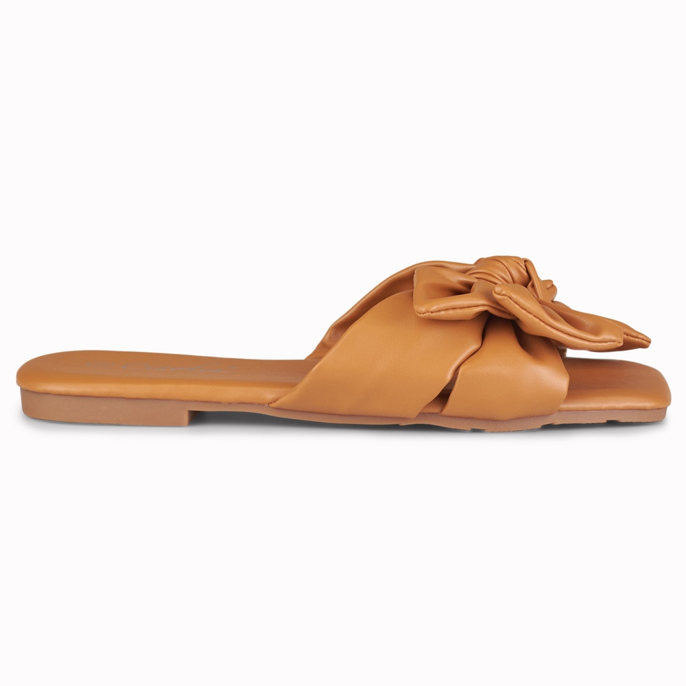 Detalii: Papuci cu fundita caramel de la Isanna maro