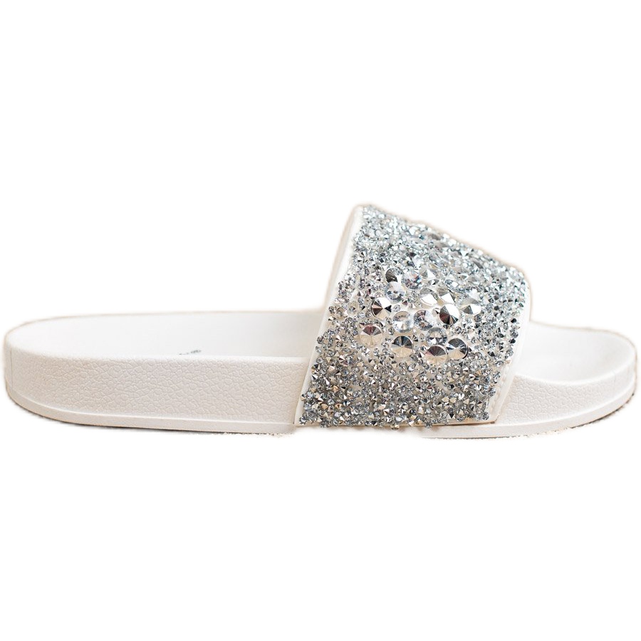 SHELOVET Slapi cu decorațiuni alb argintiu – Confort și eleganță la fiecare pas