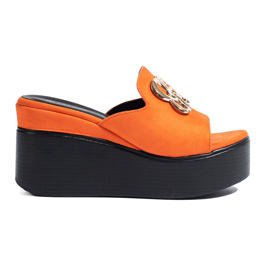 Flip-flops din piele intoarsa cu pana inalta de la Shelovet sunt o propunere unica pentru femeile care apreciaza combinatia dintre confort si design la moda. Acest model în culori aprinse portocalii va atrage cu siguranță atenția și va adăuga energie stilurilor de vară.