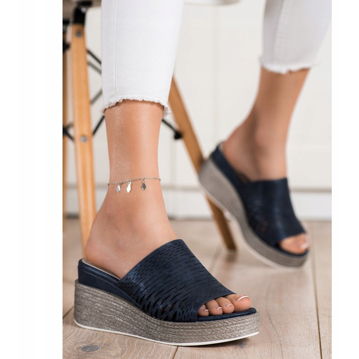 Goodin Goodin Papuci cu pene ajurate albastru marin