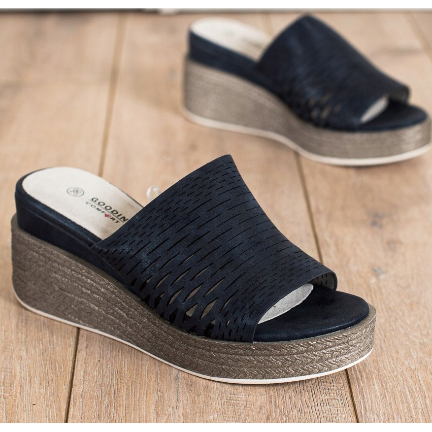 Detalii: Goodin Papuci cu pene ajurate albastru marin