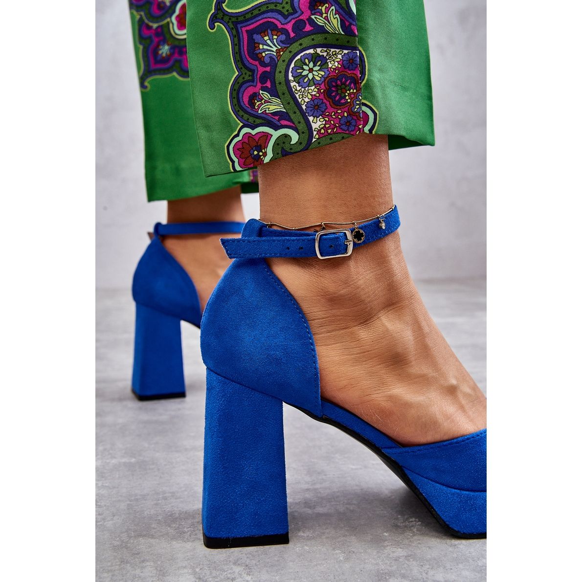 Detalii: PS2 Papuci cu platformă Diame Blue Suede Toc gros albastru