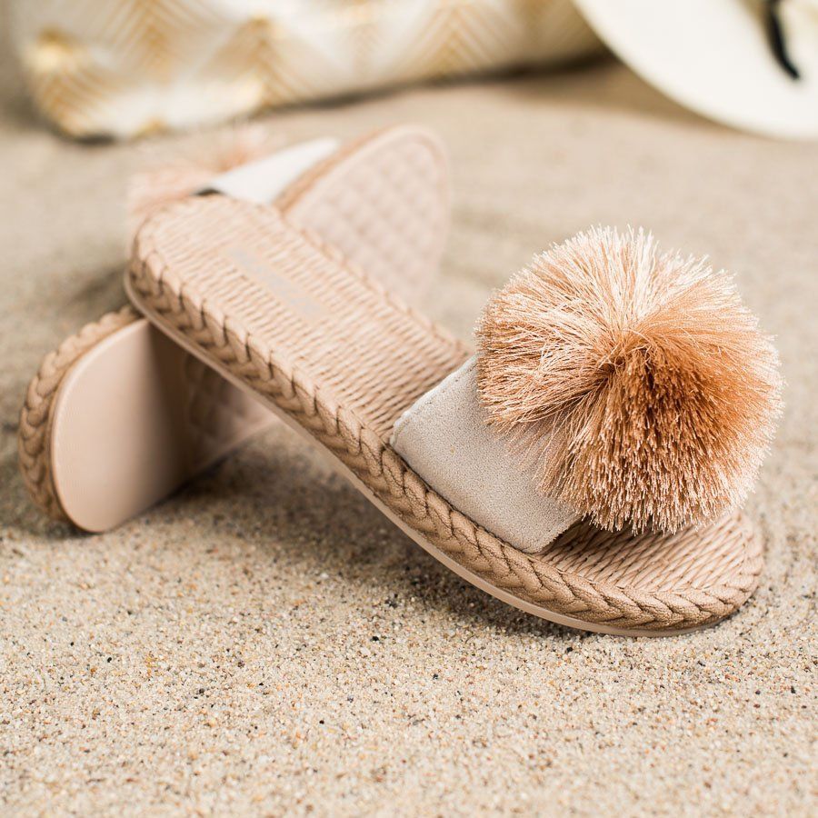 Detalii: Bestelle Papuci Cu Pompon bej maro