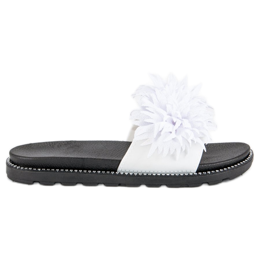 Detalii: Papuci cu pompon alb