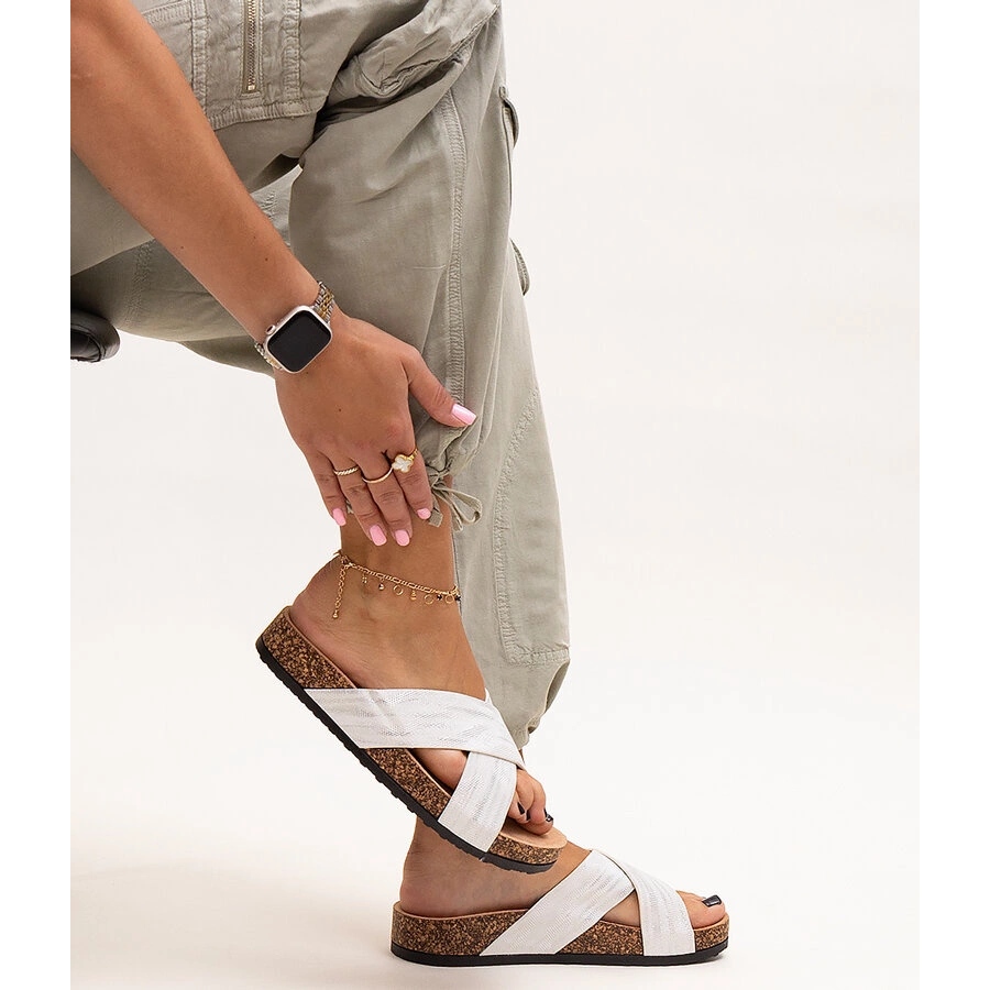Inna marka Papuci cu talpă din plută lucioasă Ribera alb