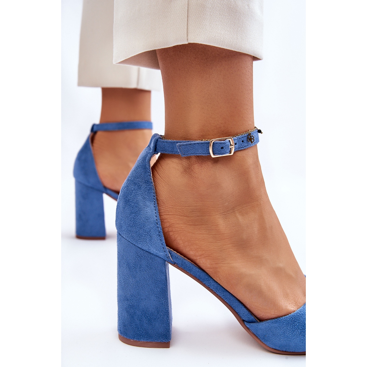 Detalii: Papuci cu toc albastru Lexie din piele intoarsa