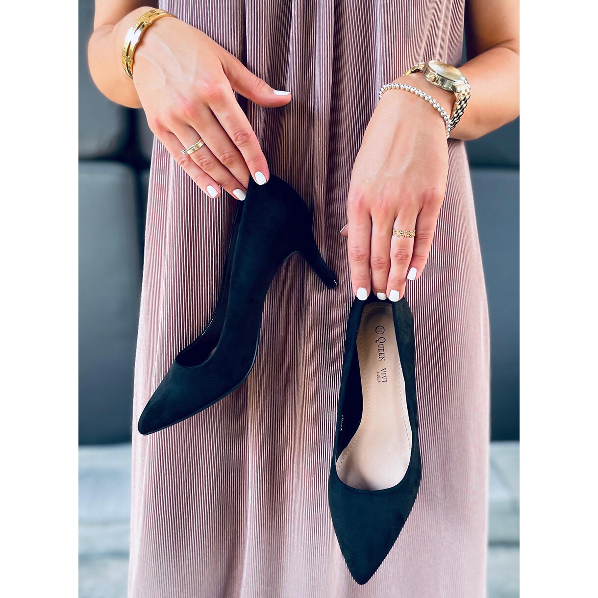 Pompele stiletto Susan Black sunt alegerea perfectă pentru fiecare femeie care apreciază eleganța și stilul. Acești pantofi negri cu un vârf ascuțit delicat combină designul clasic cu cel modern, ceea ce îi face un plus perfect pentru orice garderobă. Datorită utilizării de piele de căprioară ecologică, pantofii nu sunt doar estetici, ci și ecologici.