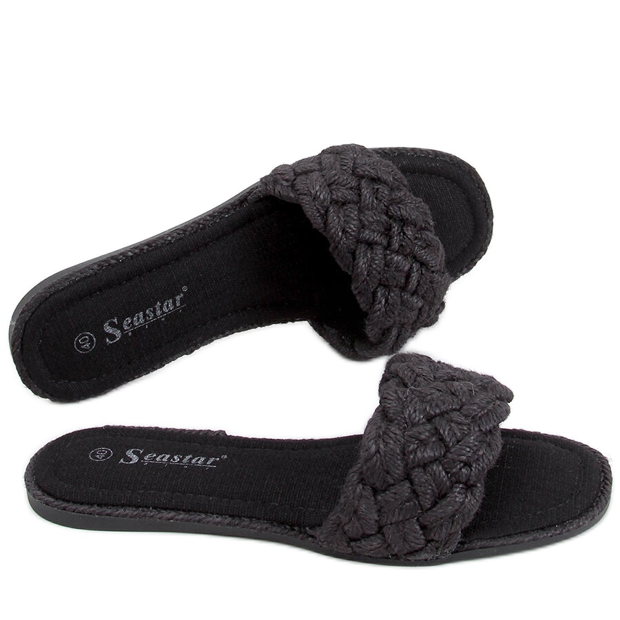 Flip-flops damă Erika Black sunt alegerea perfectă pentru zilele de vară! Acești șlapi extrem de stilați, cu o talpă plată, delectează cu o curea de in împletită care le conferă un caracter unic, de vară. Datorită culorii lor negre universale, le puteți asorta cu ușurință la multe stiluri de vară - de la look-uri de zi cu zi până la combinații mai elegante.