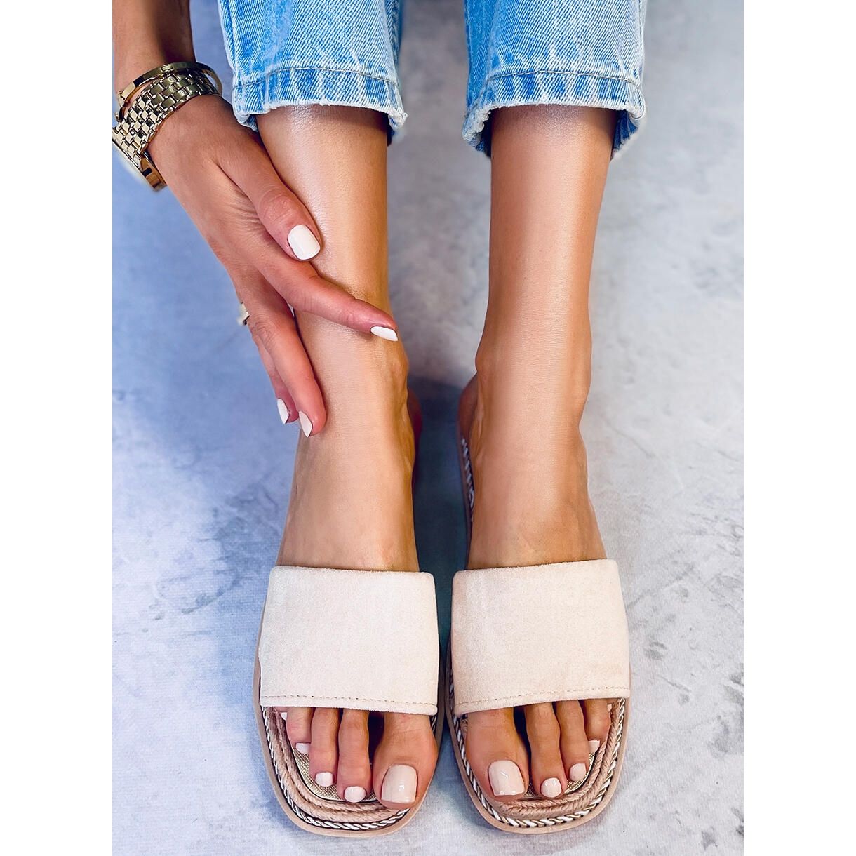 Detalii: Papuci Daniels Beige din piele intoarsa pentru femei bej