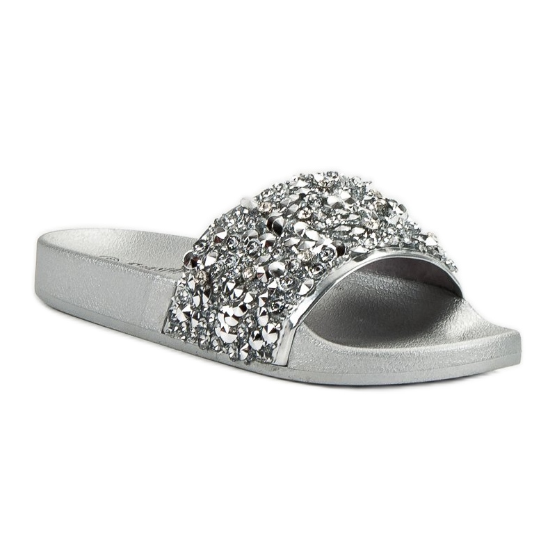 Vă prezentăm șlapii eleganti Seastar, argintii, care sunt complementul perfect pentru orice stil de vară! Designul lor unic atrage atenția datorită numeroaselor cristale strălucitoare, care le conferă un caracter unic și le fac un adevărat decor al garderobei fiecărei femei.