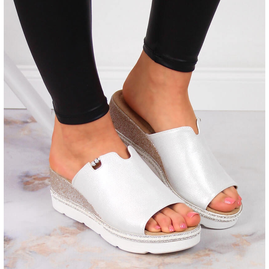 T.Sokolski Papuci de argint pentru femei pe o pană T.Sokolski