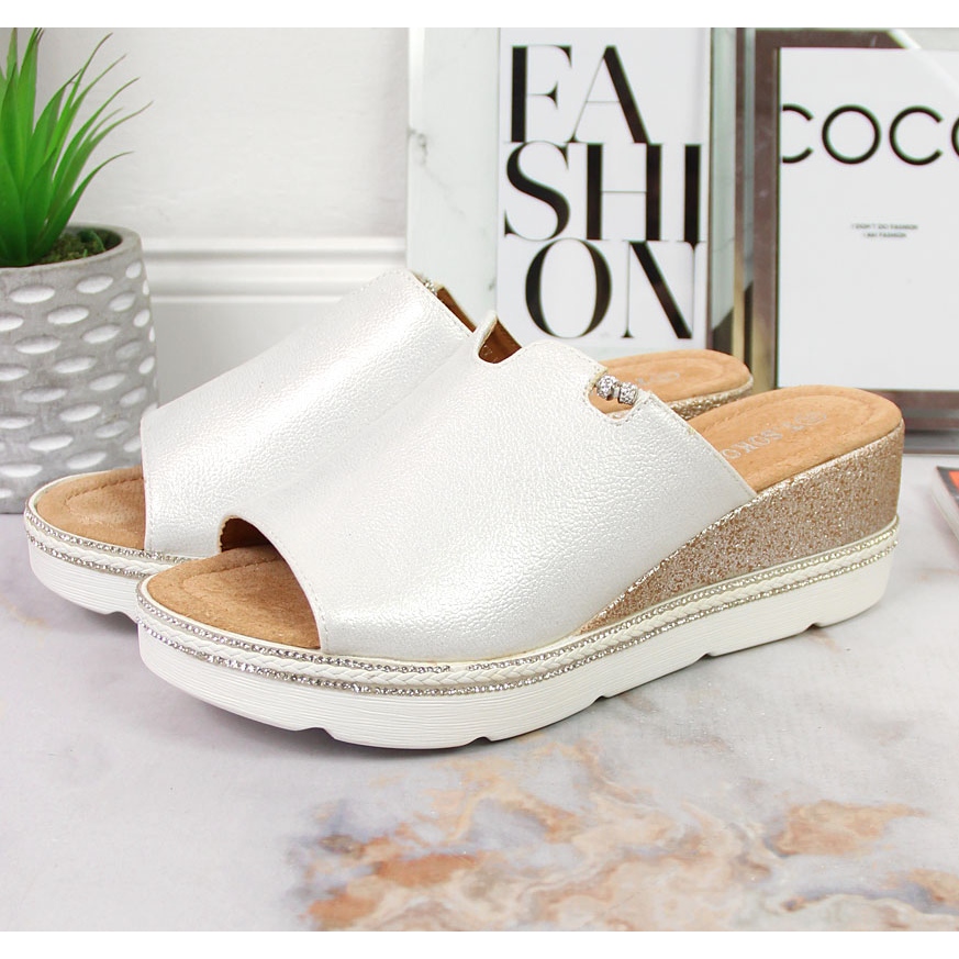 Extrem de la modă și cea mai recentă propunere de șlapi de la marca T.Sokolski într-o formă confortabilă. Șlapii sunt montați pe o pană confortabilă, garantează o completare perfectă a stilului feminin de vară, asigurând confort deplin la mers.