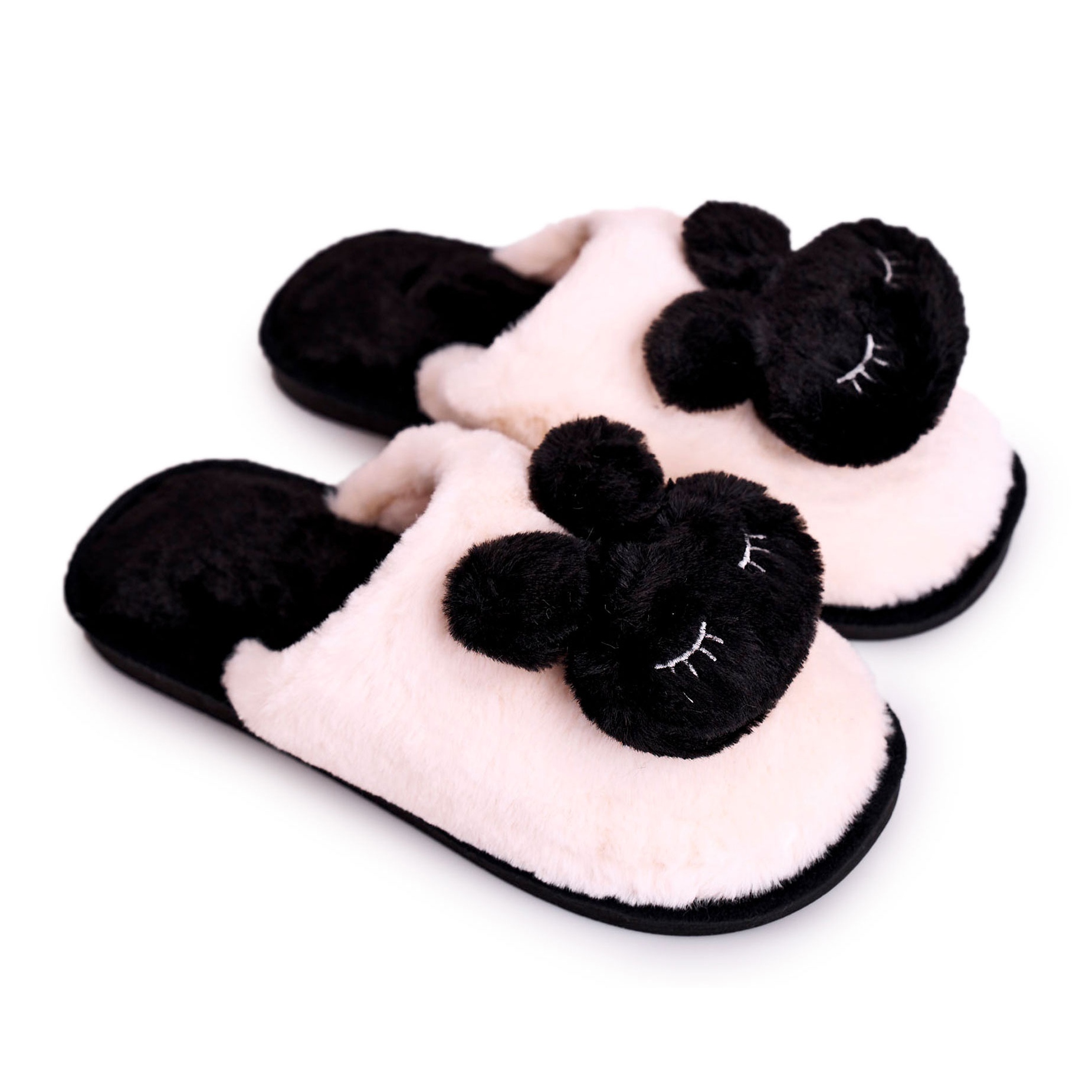 Inna marka Papuci de blană de iepure negri pentru femei alb negru