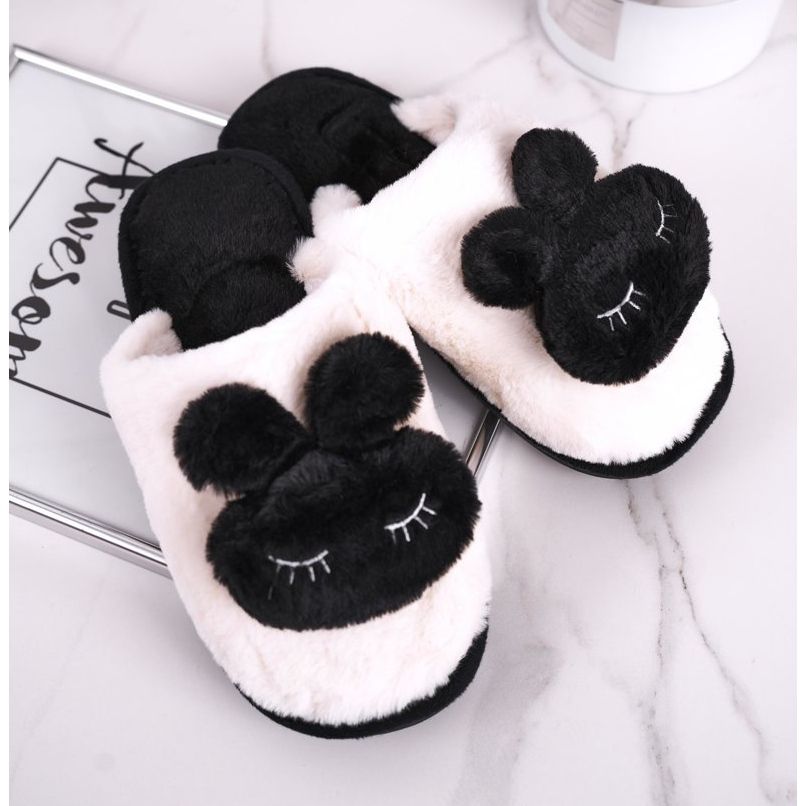 Detalii: Papuci de blană de iepure negri pentru femei alb negru