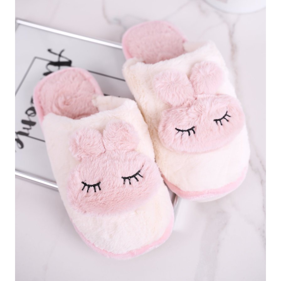 **Papuci de damă cu blană de iepure alb și roz – Confort și stil într-unul!**