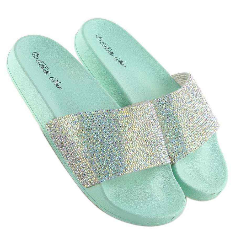 Detalii: Papuci de cauciuc cu zirconiu cubic S20 LT.VERDE albastru