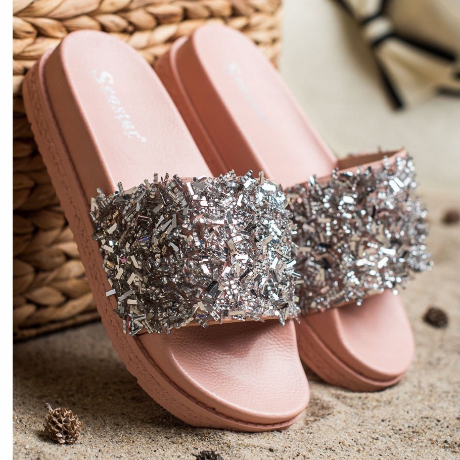 Seastar Seastar Papuci de cristal de moda maro roz argint