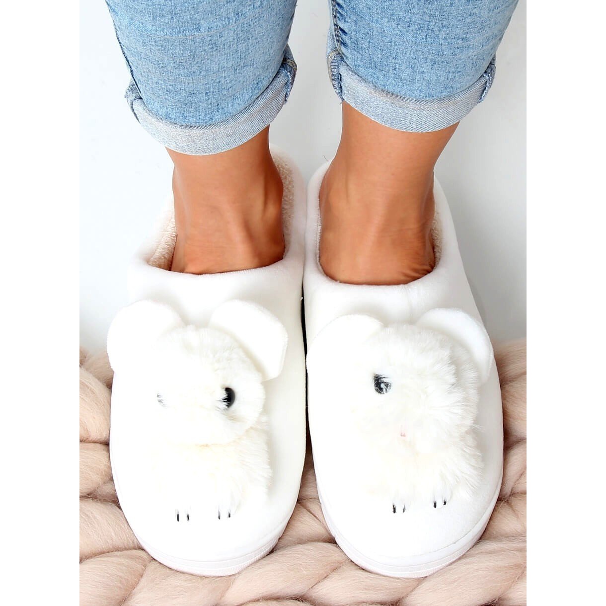 MA02P Papucii albi de dama sunt alegerea perfecta pentru serile racoroase de toamna si iarna petrecute acasa. Acești papuci fermecați, decorați cu un motiv animal, vă vor fura cu siguranță inima. Realizate din catifea moale, acestea asigura confort si placere de a purta.