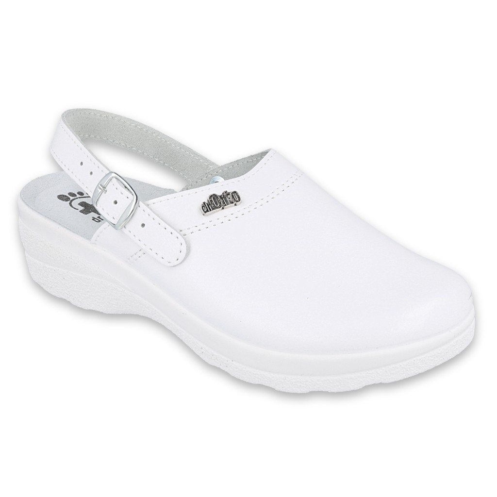 Papucii de damă Befado 157D001 într-o culoare albă clasică sunt încălțăminte perfectă pentru femeile care apreciază confortul și sănătatea picioarelor. Aceste flip-flops preventive specializate sunt recomandate în special persoanelor care lucrează în domeniul sănătății, unde statul în picioare prelungit și mersul intens pe jos sunt obișnuite.