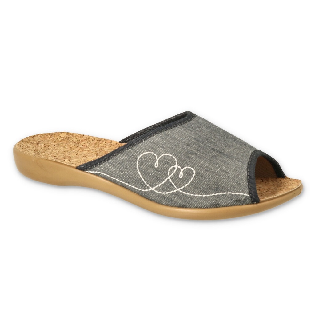 Detalii: Papuci de damă Befado cu inserție PU din plută 254D146 inimioare gri