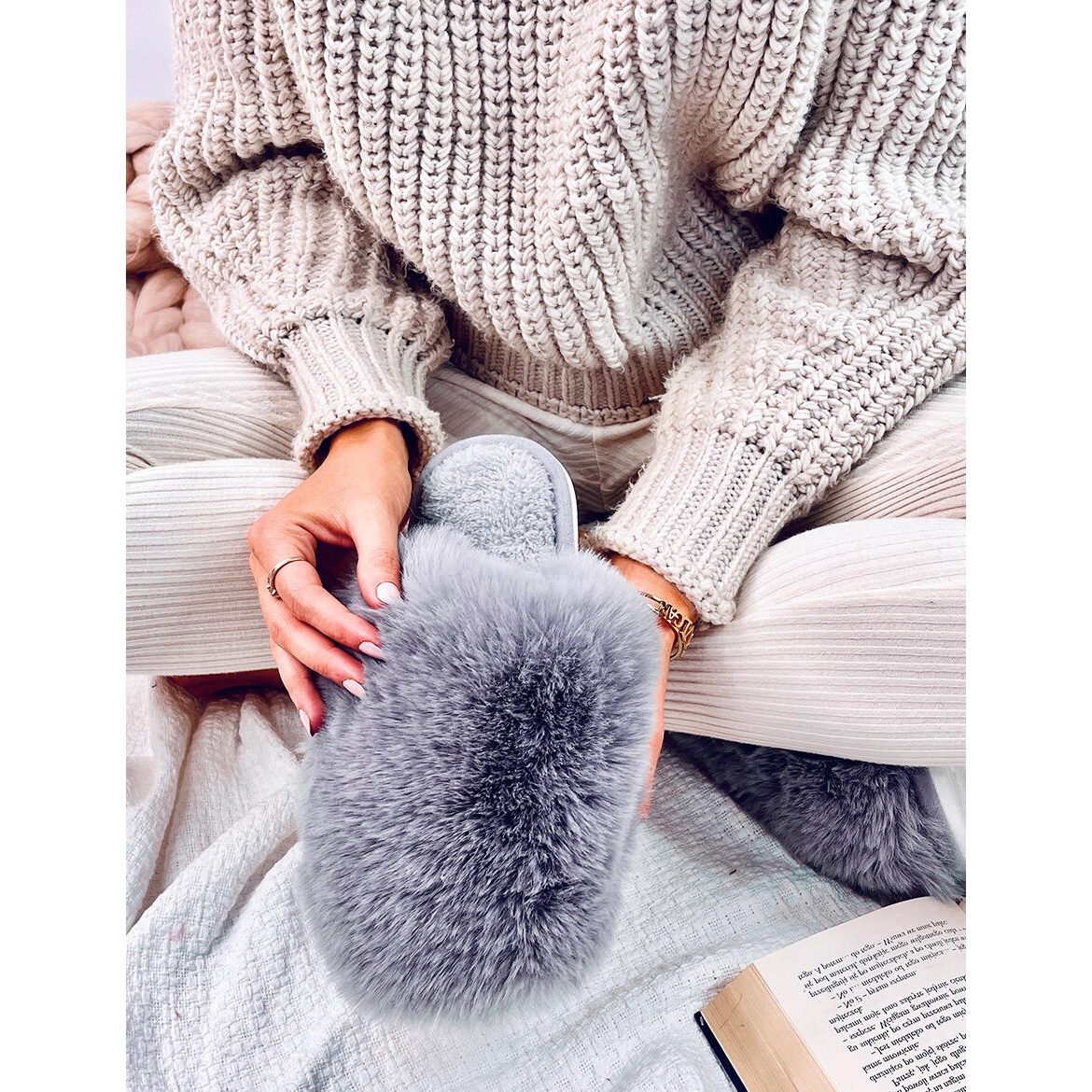 Papucii de damă din blană Calvert în gri sunt o alegere perfectă pentru fiecare femeie care apreciază confortul și stilul. Realizate din blana moale si placuta la atingere, ofera caldura si confort in serile de iarna petrecute acasa. Datorită tocului plat și vârfului rotund, acești papuci sunt extrem de confortabili, ceea ce îi face perfecți pentru purtarea de zi cu zi.