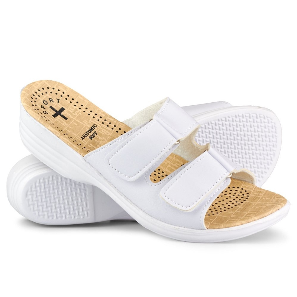 Flip -flop -uri moderne, confortabile, din colecția Keeshoes, perfectă pentru primăvară și vară. Partea superioară este confecționată din piele ecologică într -o culoare albă universală, platforma de 4 cm oferă o creștere subtilă și o amortizare bună în timpul uzurii de zi cu zi. Cureaua de velcro reglabilă vă permite să potriviți pantoful cu piciorul, iar degetul deschis garantează respirabilitatea în zilele mai calde.