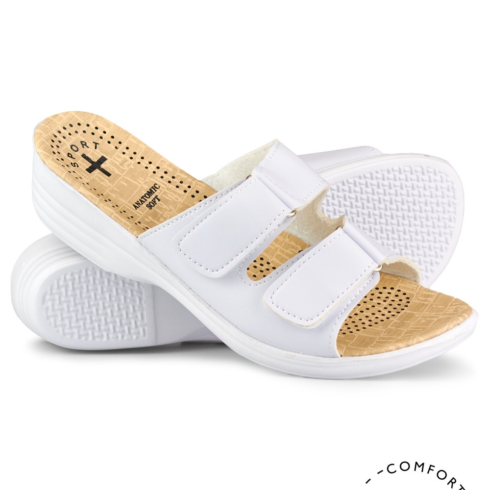 Confortul și stilul universal într -un singur - flip -flops -ul White Velcro sunt o alegere practică pentru sezonul de primăvară/vară.