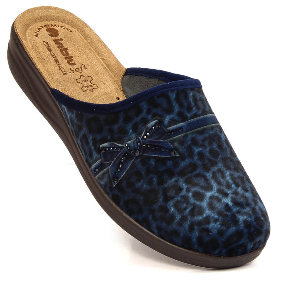 Inblu Papuci de damă confortabili Inblu bleumarin cu imprimeu leopard albastru marin