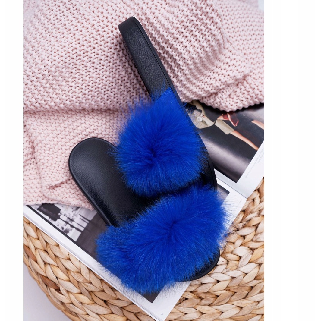 Inna marka Papuci de damă cu blană naturală Naturis Safir albastru