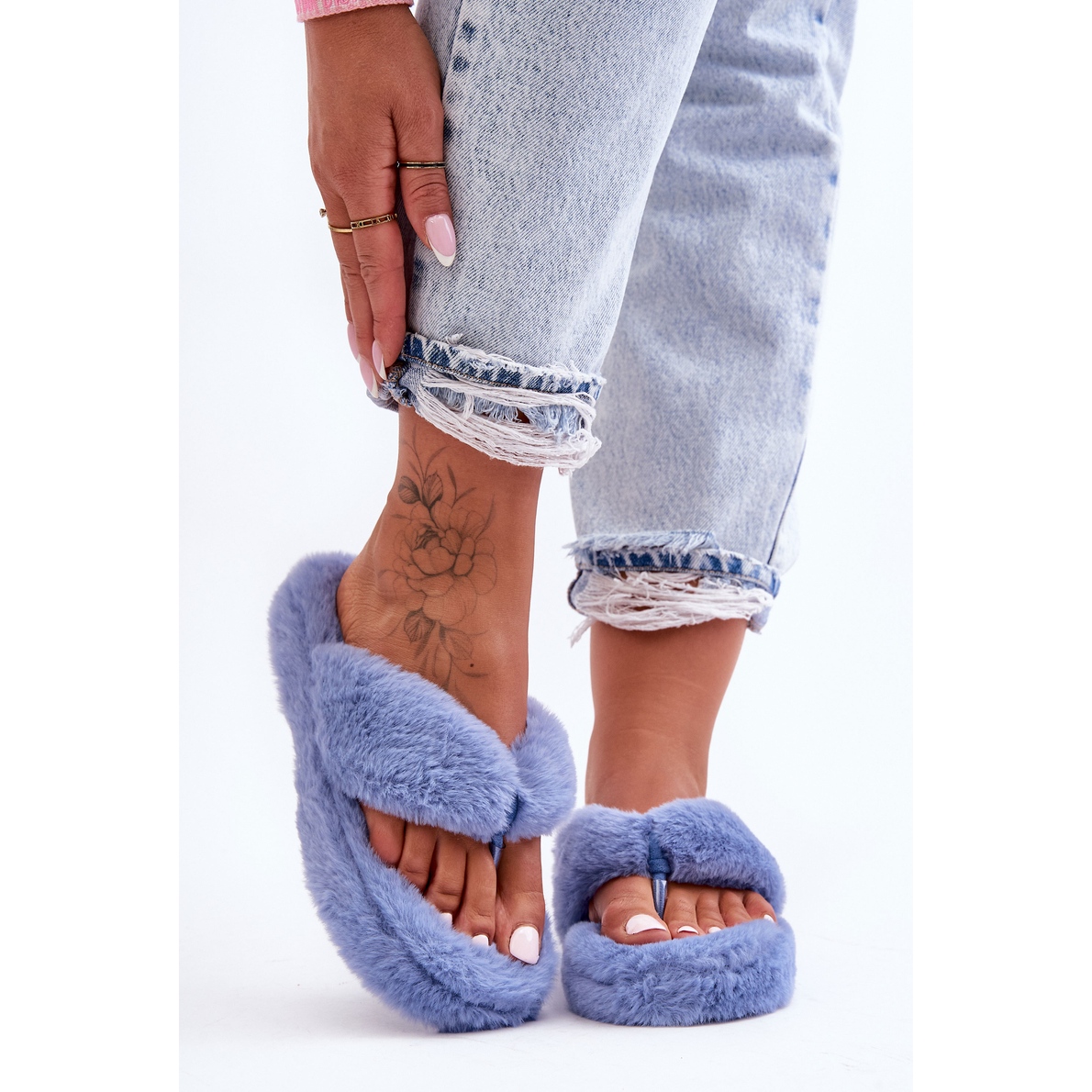 Detalii: Papuci de damă cu blană Papuci albastru Elma