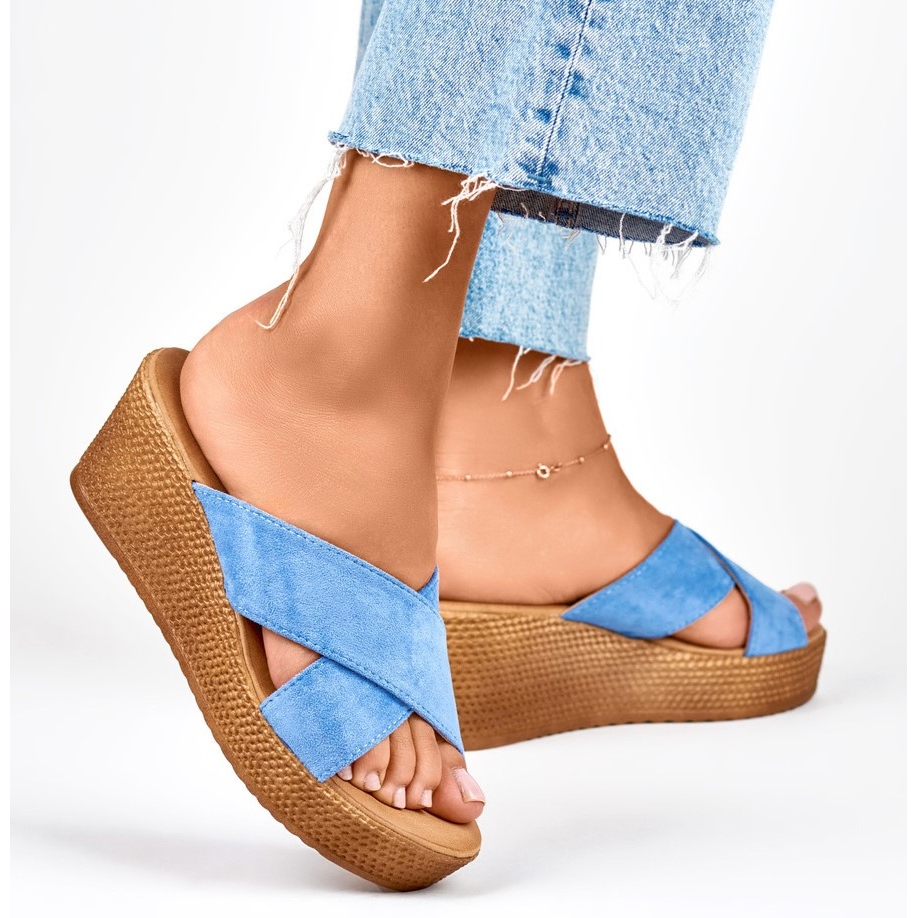 Flip-flops de damă albastru cu pană - alege stil, confort și modă pentru primăvară/vară!