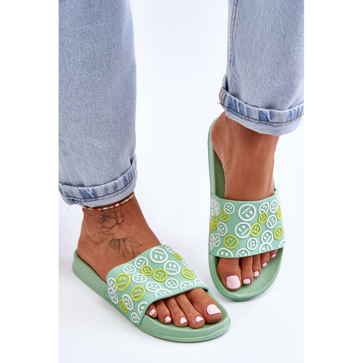 Papuci pentru femei Cosette cu emoticoane - verde, ușor și confortabil. Perfect pentru vară, pentru plajă, piscină și pentru uz de zi cu zi.